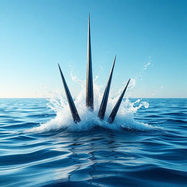 “I heard a sound from below me, near the water. I don’t know what the sound was, I cant recall, but I looked down anyway. Four long, thin… (horns? Spires? Spikes? Think of a saber, long thin and slightly curved sword) were sticking directly out of the water in front of me. They were easily 4 feet long from the top of the water where I assumed the base was to the tapered tips that stood in the air. At first I though maybe it was the remnants of something that had sank. But it moved with the boat. It had a motion like a swimming shark, slightly side to side, and it swam directly beside the boat for at least a minute. Then it dove down, the sabers disappearing under the water, like how a whale dives down after surfacing.“